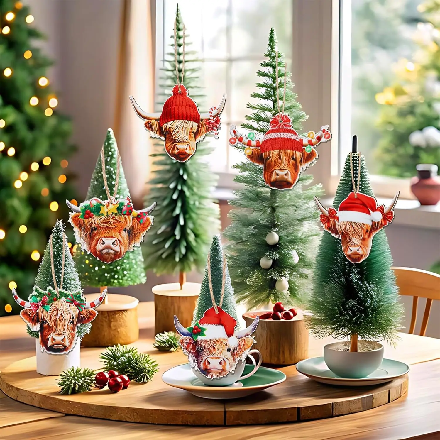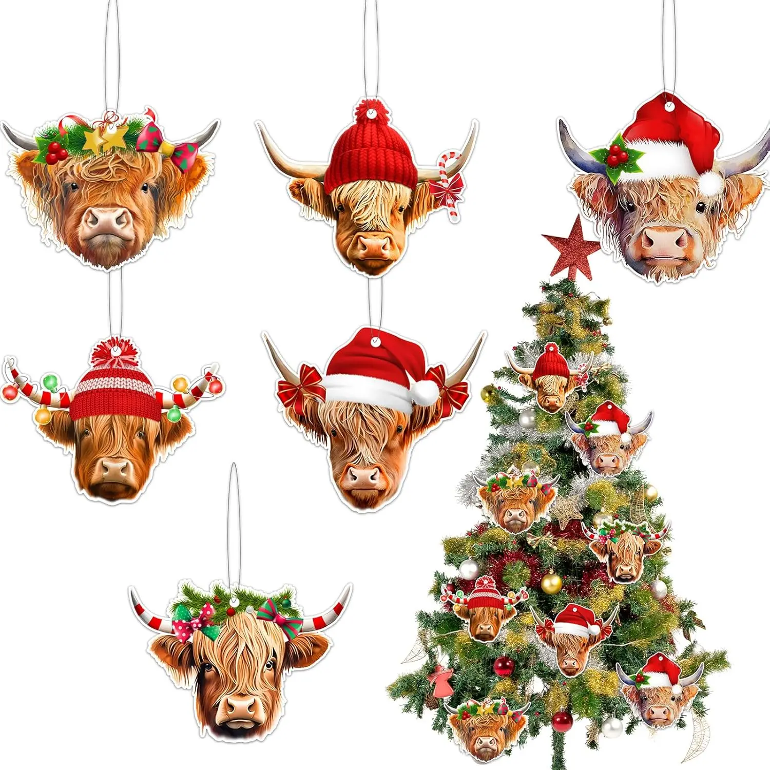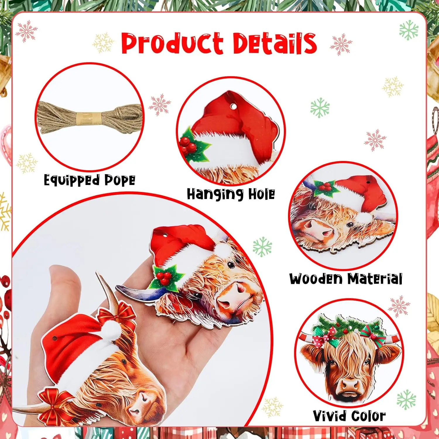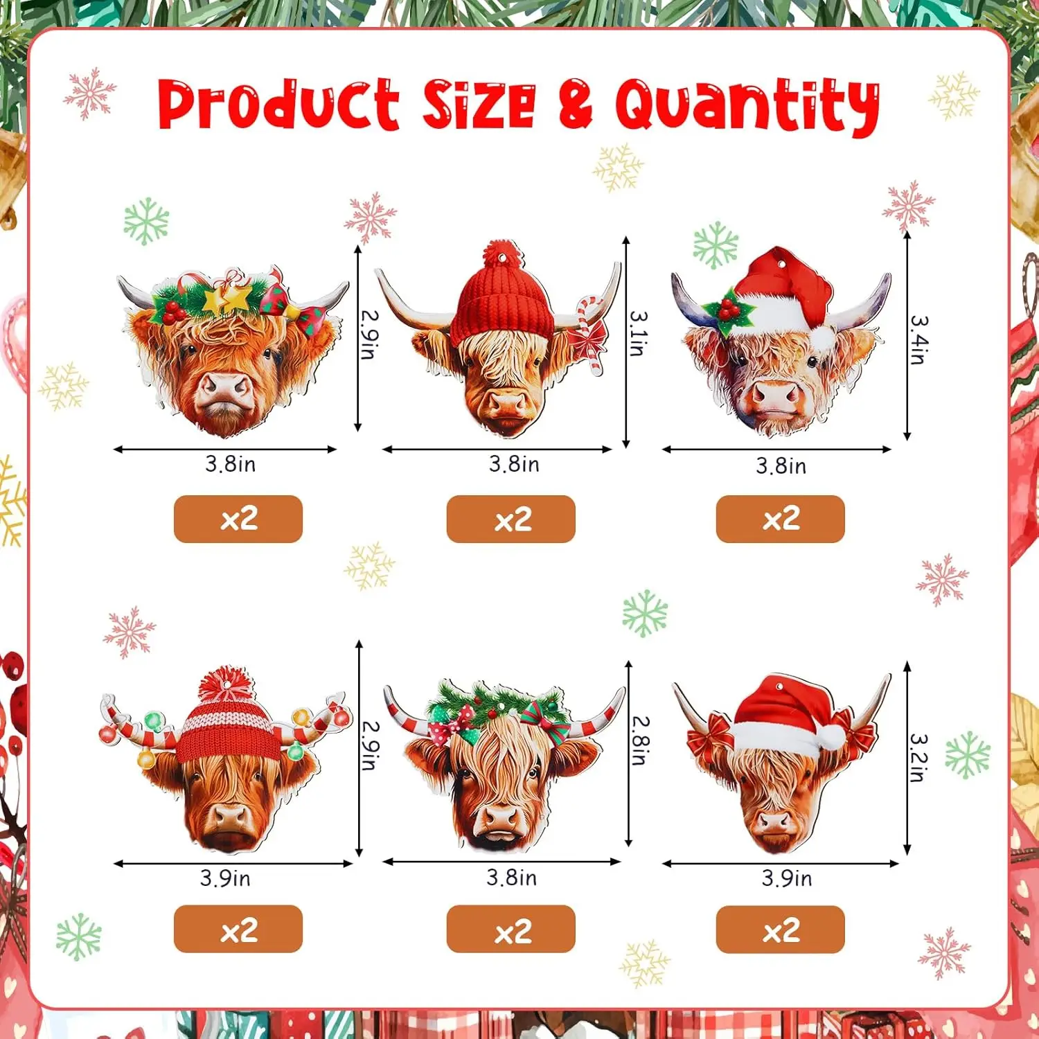 - Suitable Size: The self-designed Christmas tree hanging decors are printed with 6 different highland cows, and each one measures about 3.8-3.9 inches in length and 2.8-3.4 inches in width, which are easy to hang, full meeting your demands for the Christmas tree decorations.