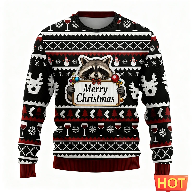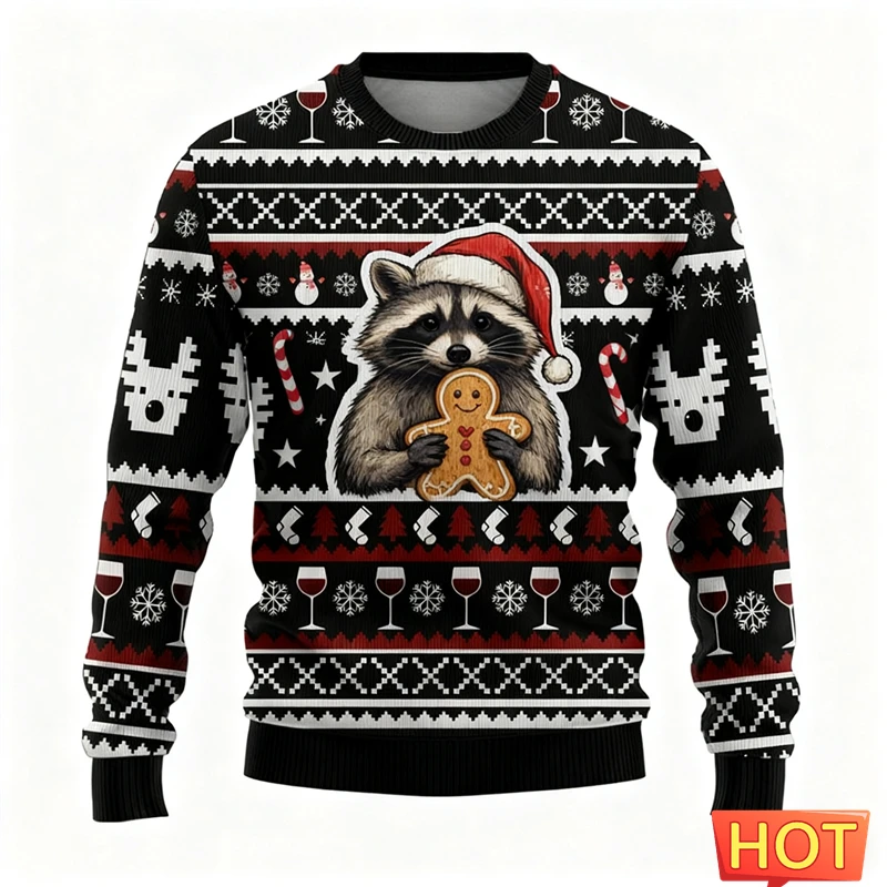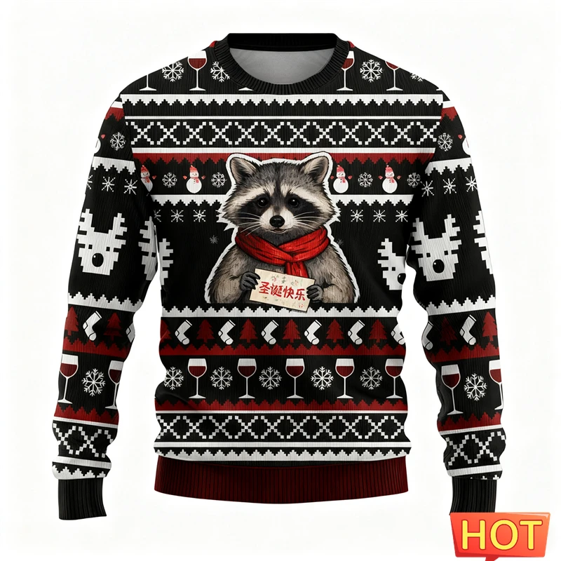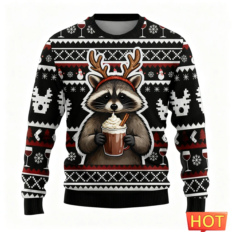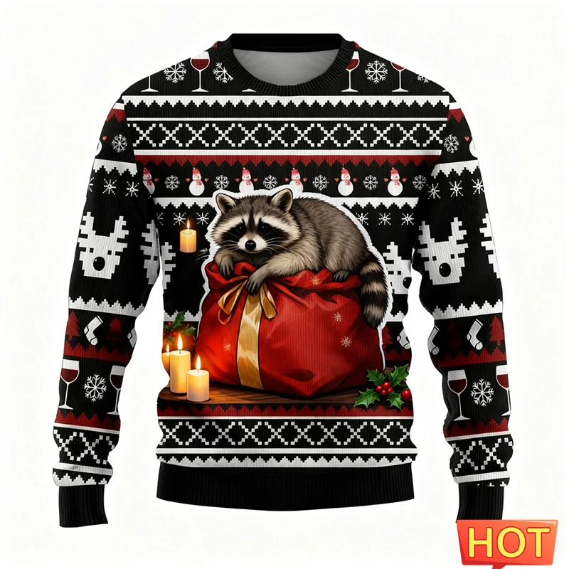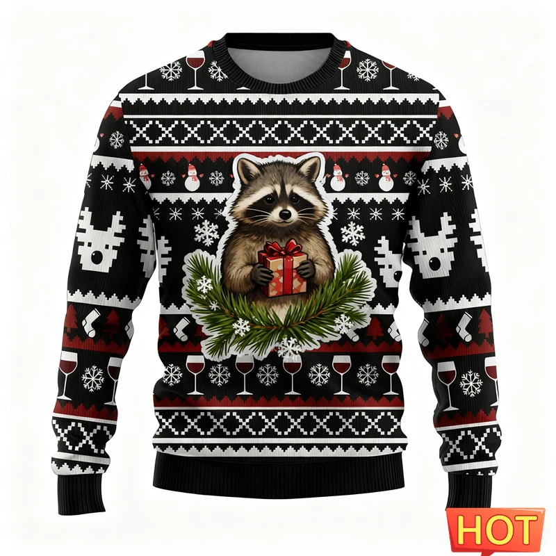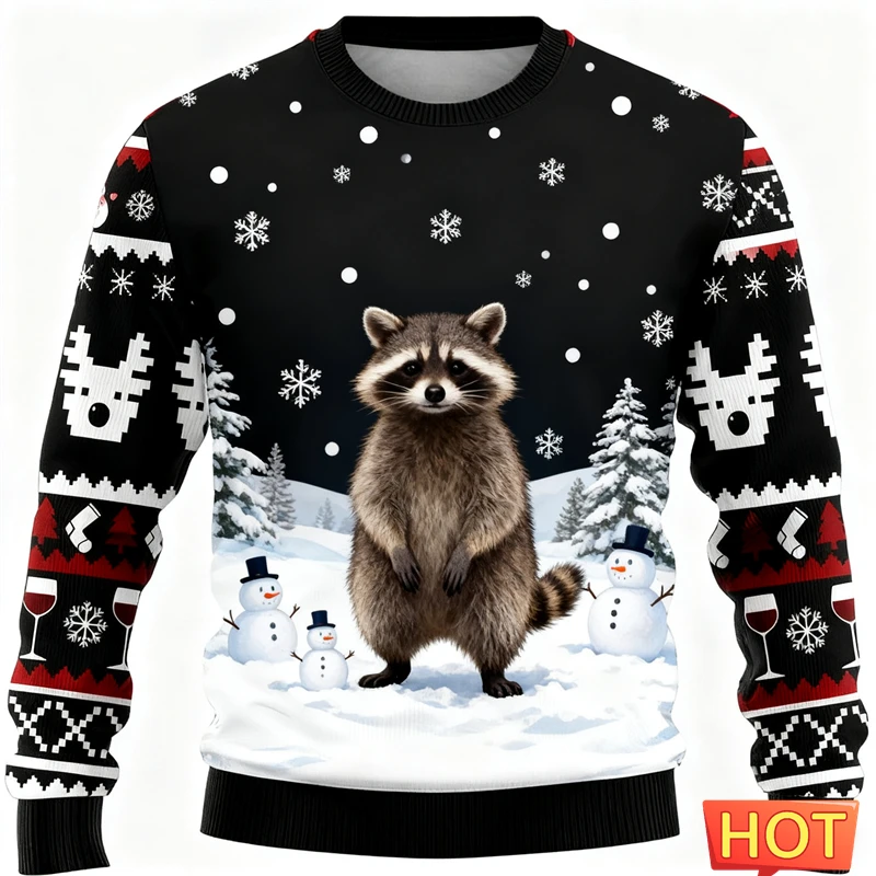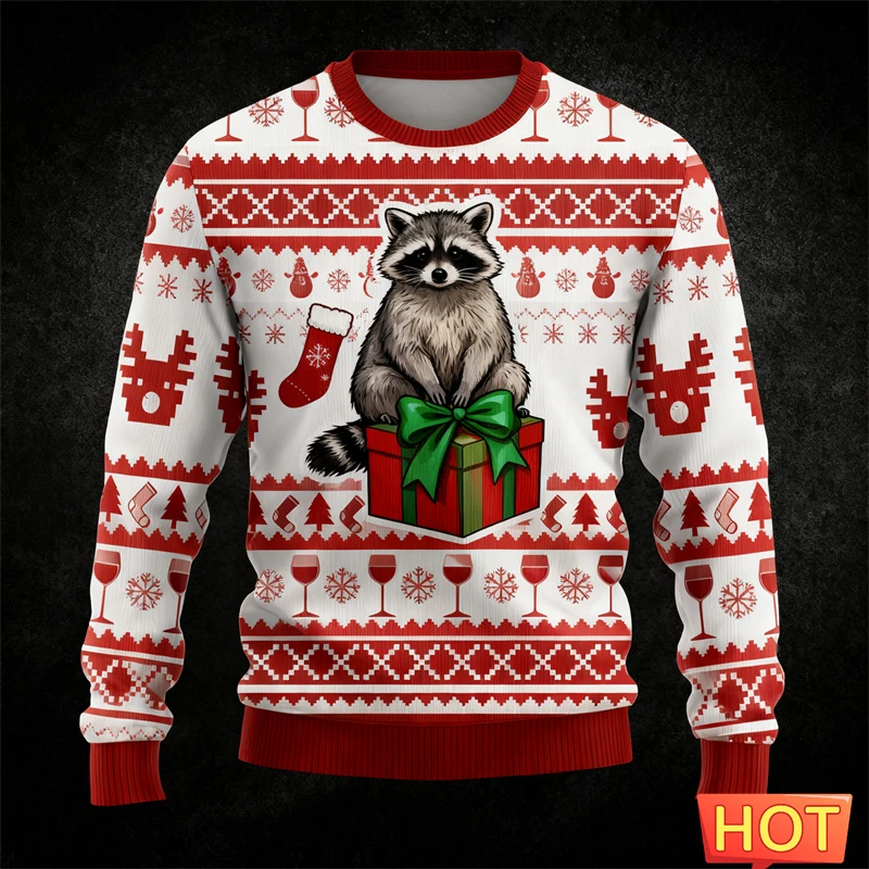 Cute Raccoon 3D Printed Pullovers Christmas Sweater